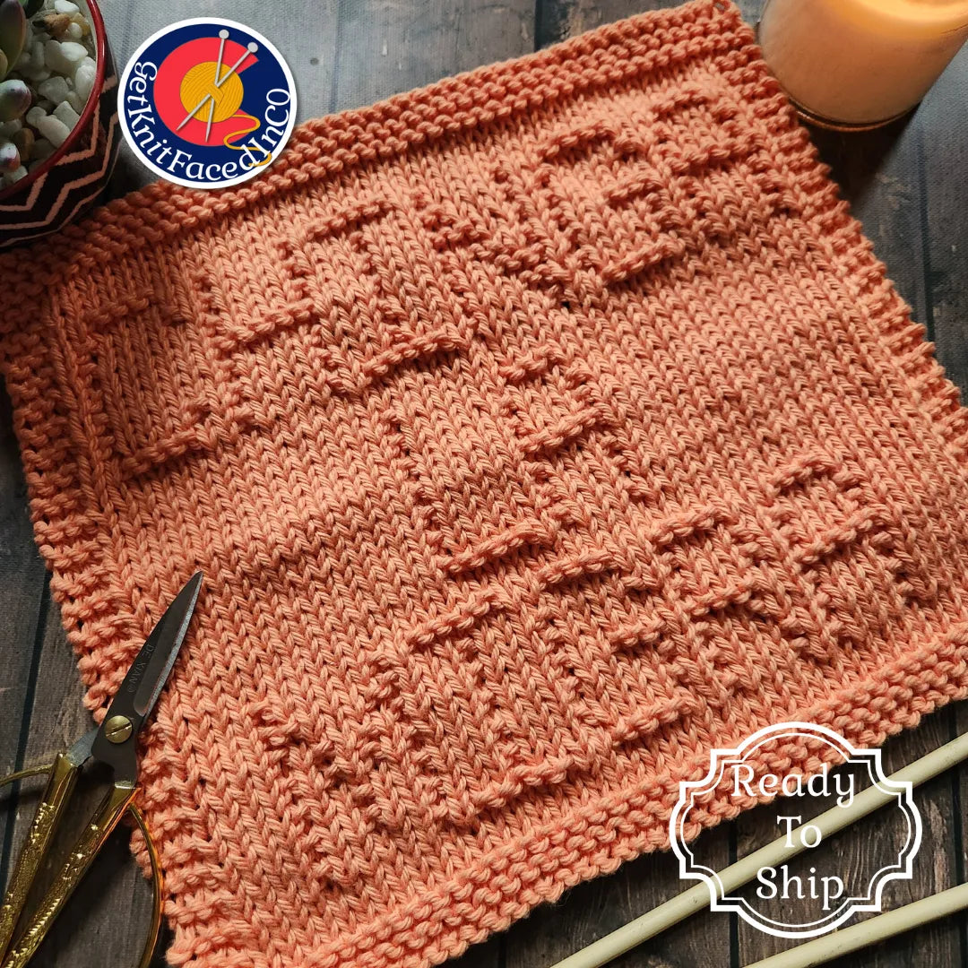 Cotton washcloth is approximately 10 inches by 9.25 inches.